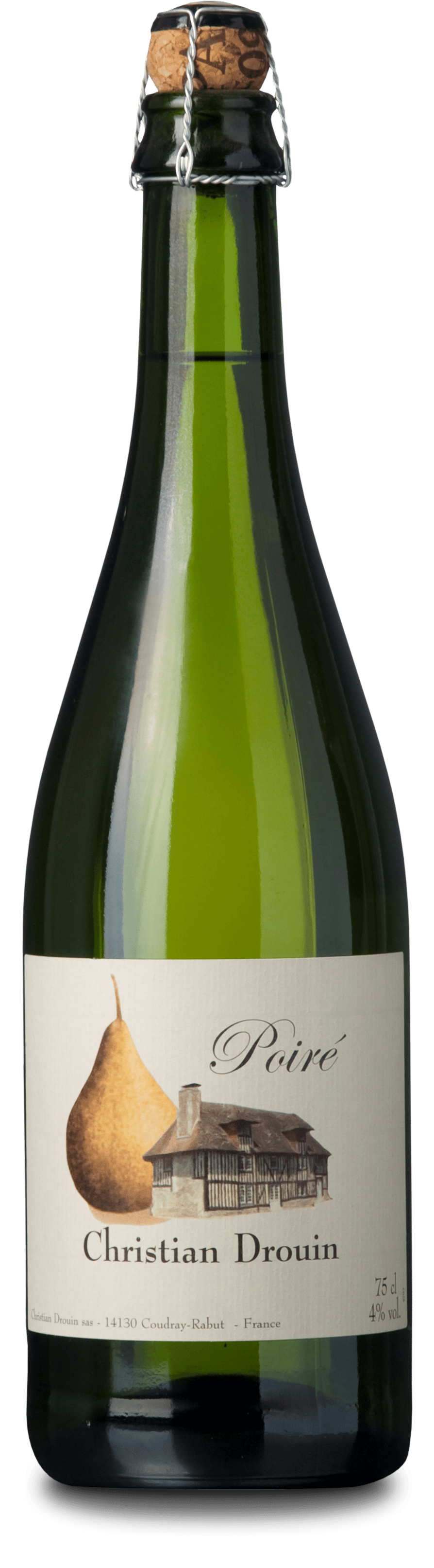En mousserende pærecider fra Normandiet i Frankrig, produceret af Christian Drouin. Cideren udtrykker friskhed, naturlig frugtsødme og let syrlighed med noter af moden pære og blomster.